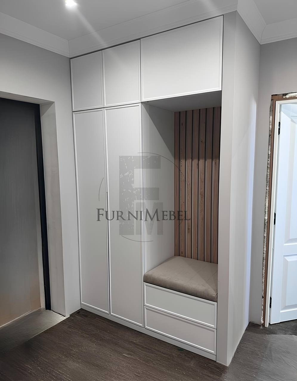 - Широкий выбор конфигурации по Вашим размерам: распашной шкаф с тумбой, прихожая с зеркалом, прихожая с зоной для вешалок и мягким сидением, прихожая со шкафом-купе, прихожая «мини», прихожая с антресолями и т. д.